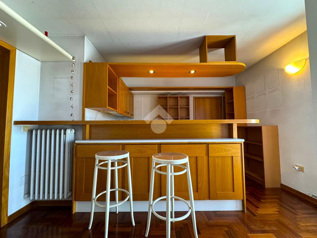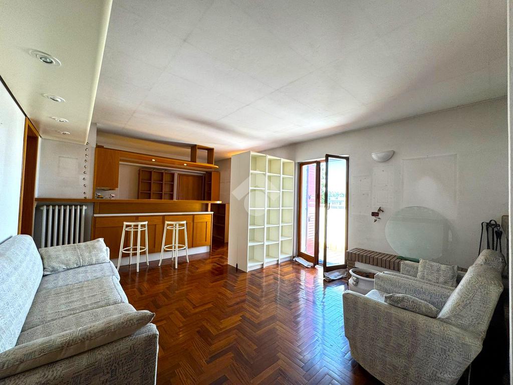 -Zona giorno openspace: soggiorno e angolo cottura in un unico ambiente conviviale, con uscita su un terrazzo.