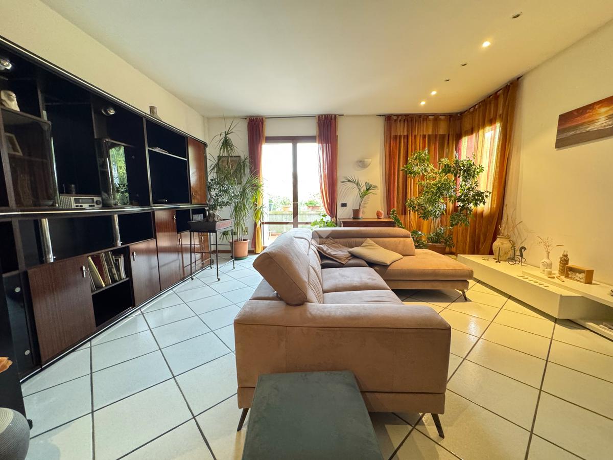 Al primo piano si sviluppa la parte abitativa, un appartamento di 130 mq, composto da: ampio e luminoso soggiorno, cucina abitabile con accesso al balcone, due camere da letto matrimoniali, due bagni entrambi finestrati, oltre a un ufficio con bagno privato, perfetto per chi lavora da casa o desidera uno spazio di rappresentanza.