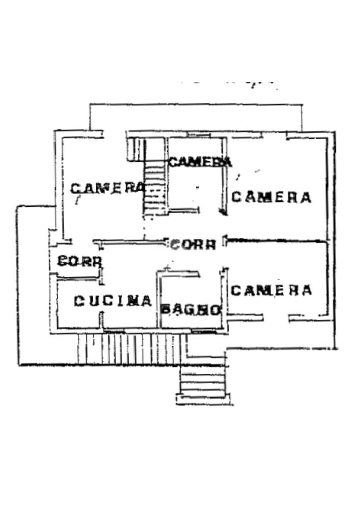 Il secondo appartamento, situato al primo piano e accessibile tramite scala esterna, presenta una distribuzione funzionale e ben organizzata. Entrando, sulla destra troviamo la sala da pranzo con cucinotto, mentre sulla sinistra si sviluppa l’ampio soggiorno con accesso al balcone. Proseguendo si accede alla zona notte, composta da bagno, camera matrimoniale, camera doppia con balcone e camera singola, ideale anche come studio.
