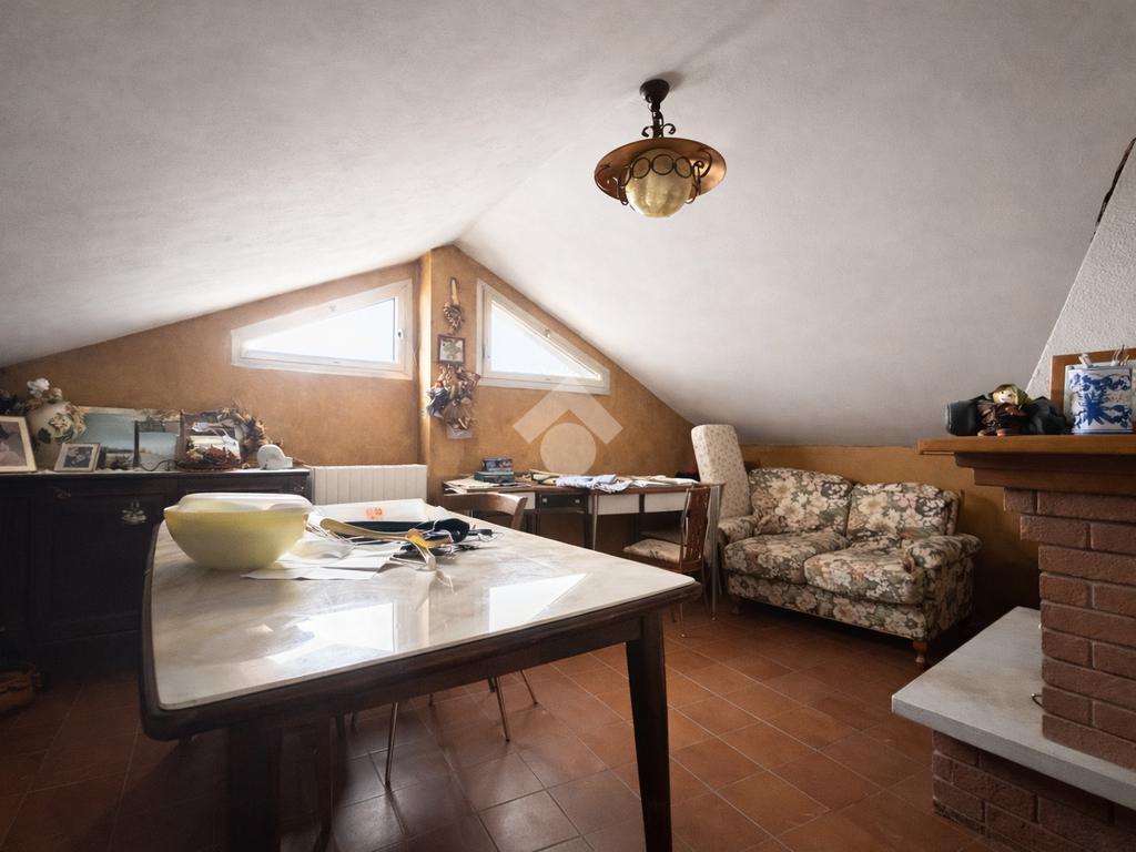 Dal soggiorno una scala interna conduce al sottotetto, dove sono presenti tre ulteriori stanze sfruttabili, una delle quali dotata di camino, oltre a un secondo bagno, rendendo questo spazio ideale come zona hobby, studio o area relax.