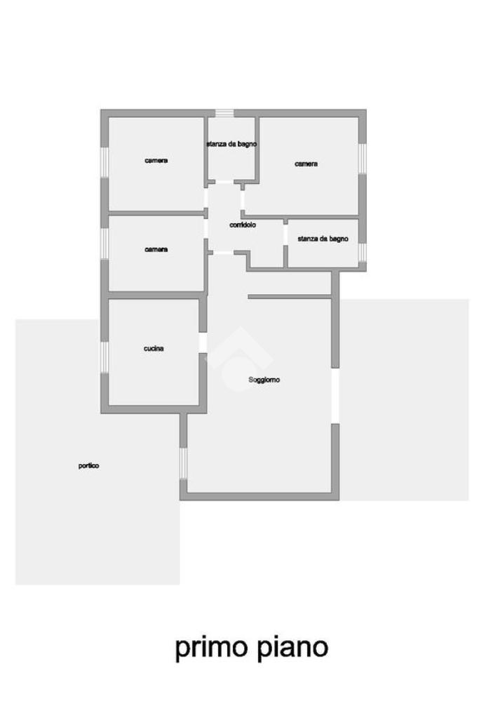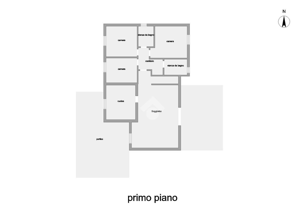 L’ingresso alla casa principale avviene tramite un ampio portico vivibile. Internamente l’abitazione si sviluppa su due livelli ed è composta da un grande e luminoso salone, una cucina abitabile, tre camere da letto, una matrimoniale, una doppia e una singola e due bagni. Dal soggiorno si accede inoltre a un portico posteriore aperto. Attraverso una scala interna si raggiunge il piano interrato, dove trovano spazio un ampio garage con scivolo, una spaziosa taverna e un comodo locale ripostiglio.
